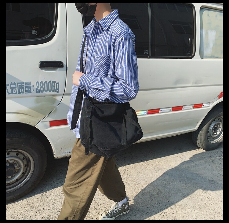 日系原宿风帆布斜挎包男女2023新款韩版学生复古休闲大容量单肩包