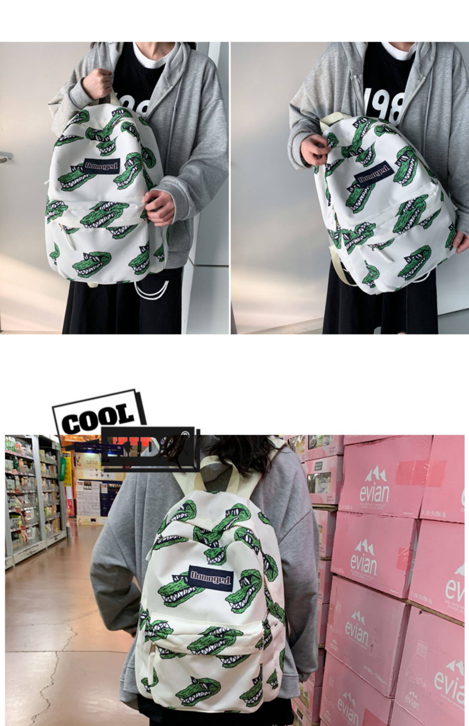 双肩包男时尚潮流潮牌中学生初中生书包女大学生原创小众印花背包