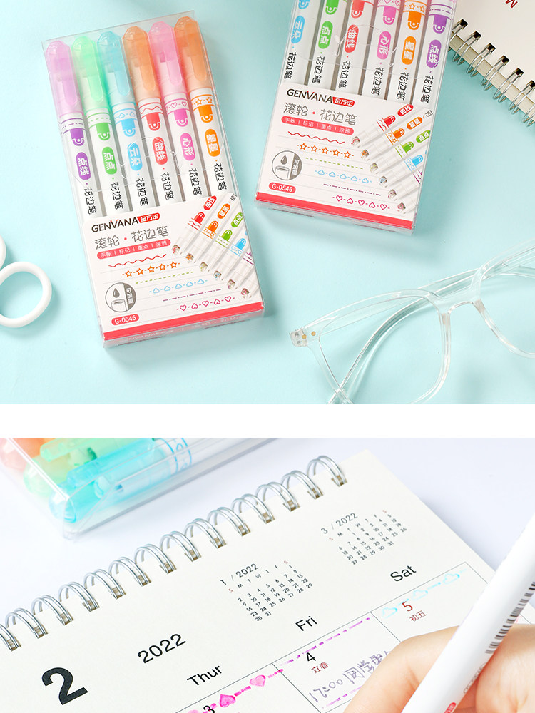 花型轮廓笔曲线笔花边笔学生彩色划重点记号笔手抄报手账荧光笔