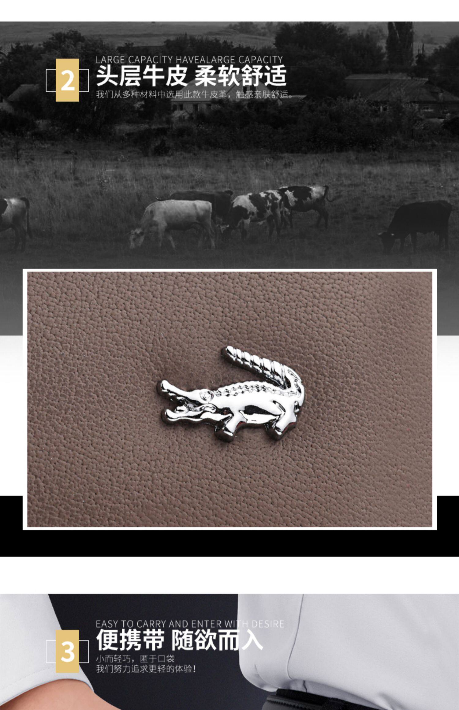 鳄鱼男士钱包真皮短款牛皮钱夹驾驶证卡包一体高档轻奢品牌皮夹男